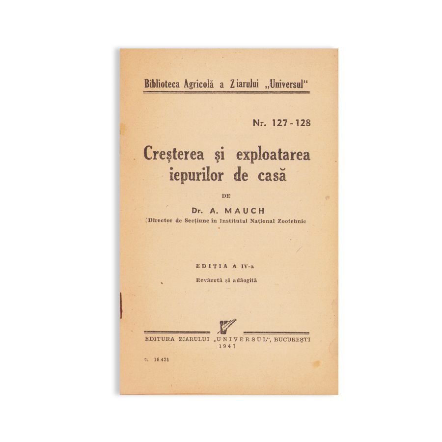 - Dr. Albert Mauch, Creșterea și exploatarea iepurilor de casă, București, Editura Ziarului „Universul”, 1947, 74 p.