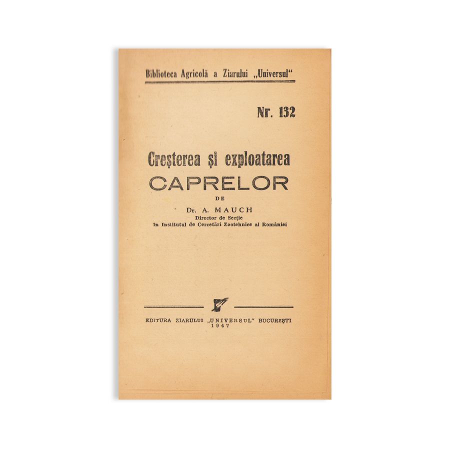 - Dr. Albert Mauch, Creșterea și exploatarea caprelor, București, Editura Ziarului „Universul”, 1947, 95 p.