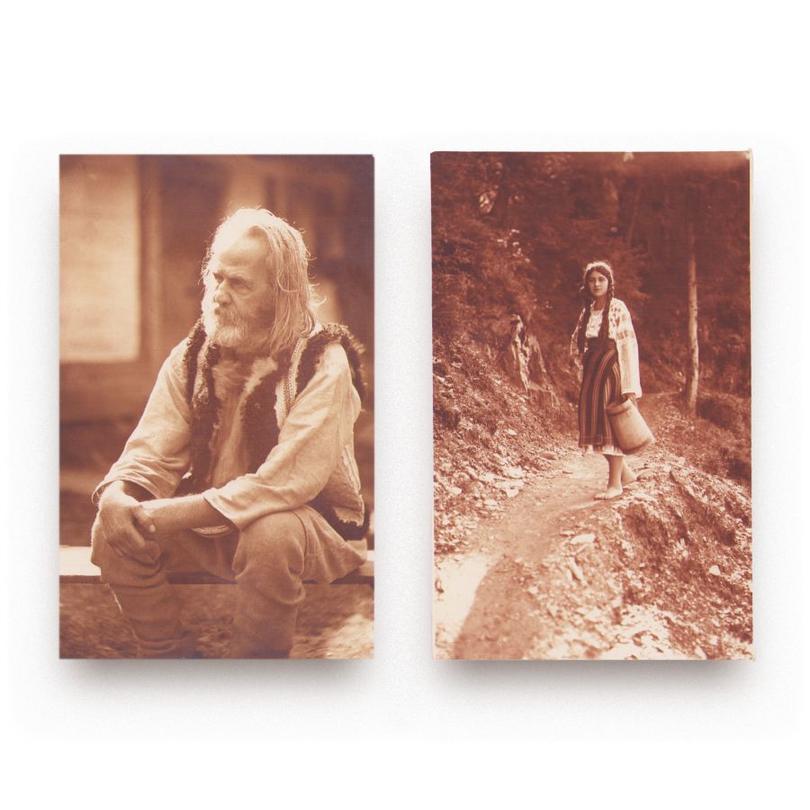 Șapte fotografii tip carte poștală în care sunt surprinse portrete și peisaje din mediul rural: Biserica din Broșteni, oier la munte, cioban din Rarău, fată din Broșteni, bătrână cu fus, moș Paraschiv din Chiril. Acestea sunt realizate de fotograful A. A. Chevallier.