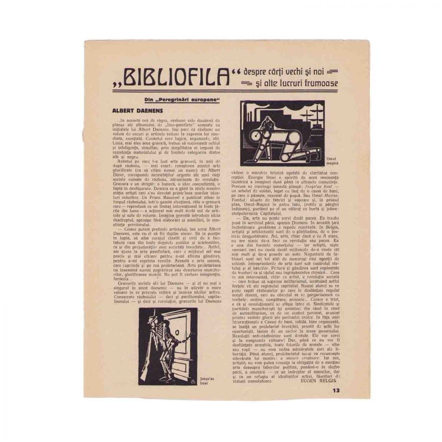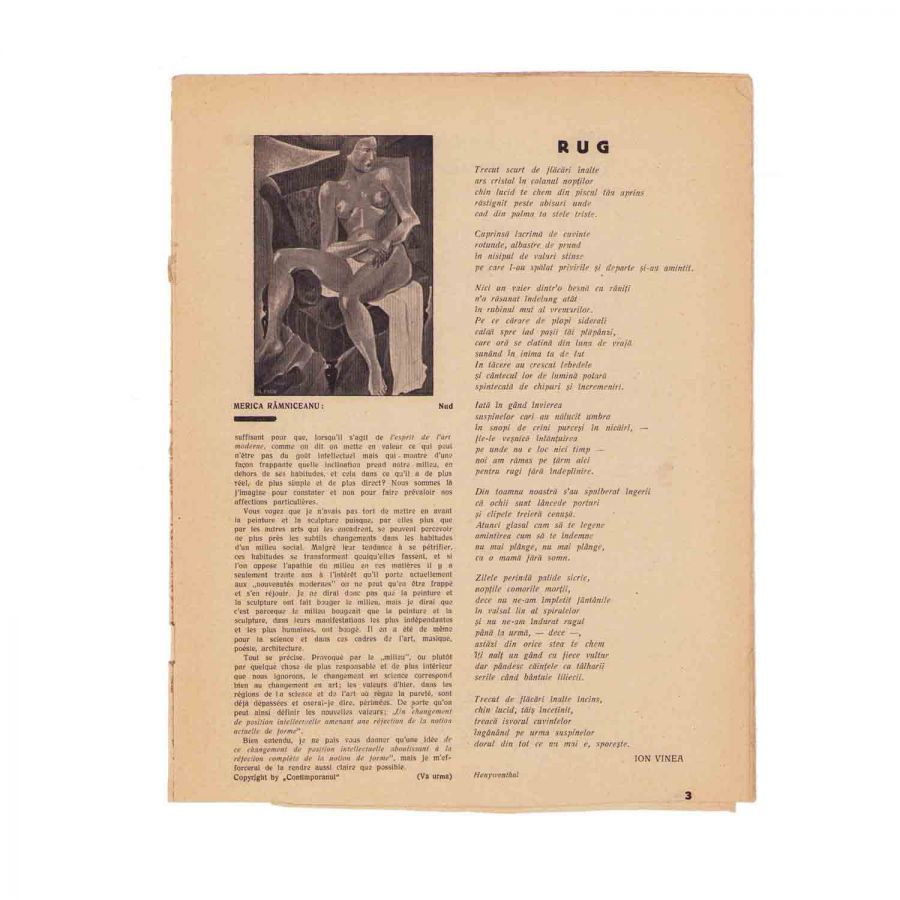 Publicația „CONTIMPORANUL”, anul XI, nr. 99 din septembrie 1931, București, Tipografia „Tiparnița”, 16 p., cu o reproducere pe prima pagină a desenului „Natura moartă” de Marcel Iancu.