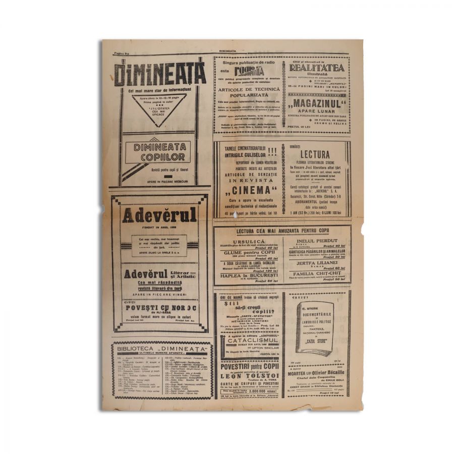 Publicația „Dimineața”, anul XXVI din 30 aprilie. Ediție specială în care sunt prezentate următoarele subiecte: dizolvarea Parlamentului, mesajul regal de dizolvare citit de Nicolae Iorga, declarația noului guvern, data noilor alegeri.