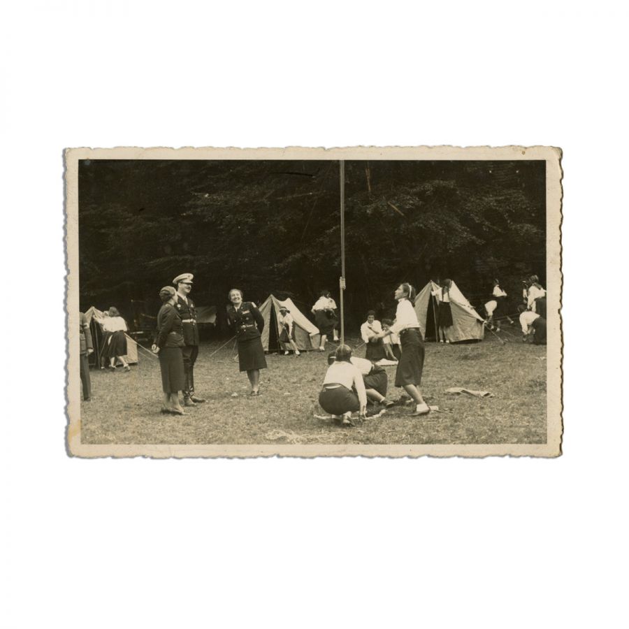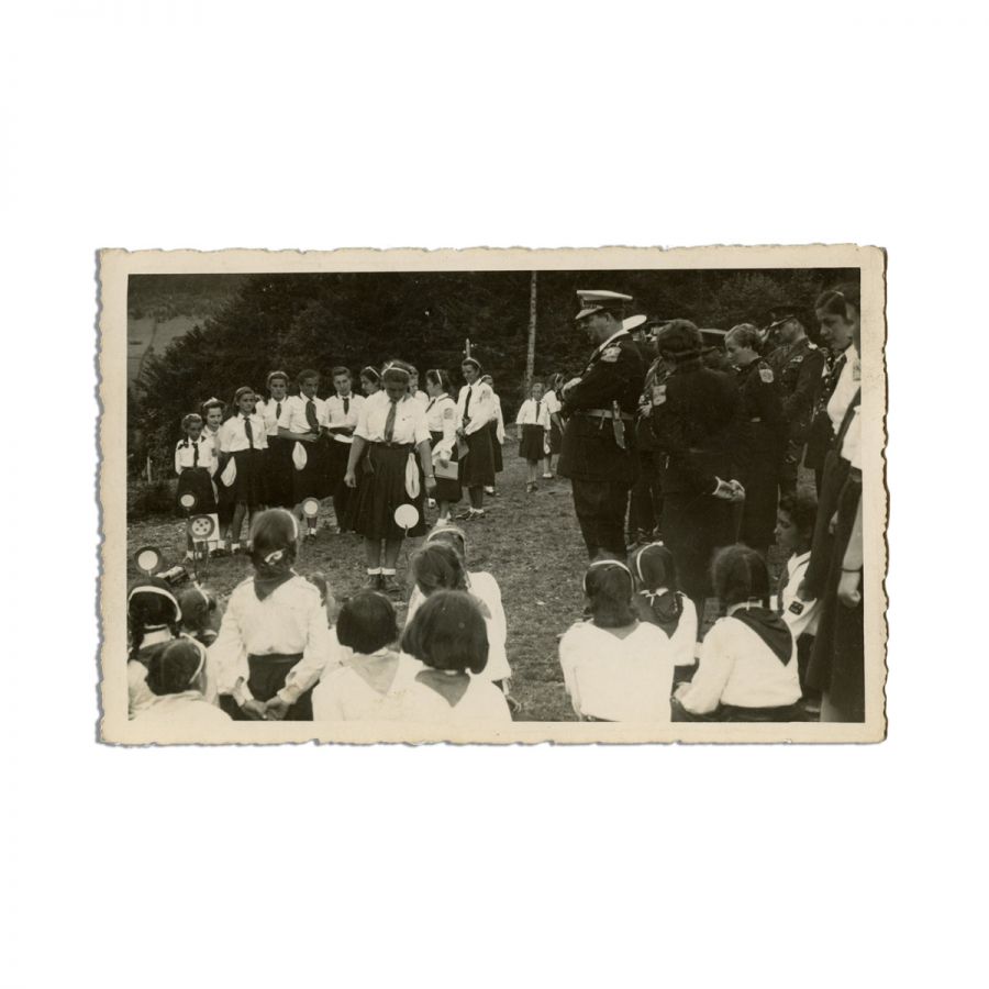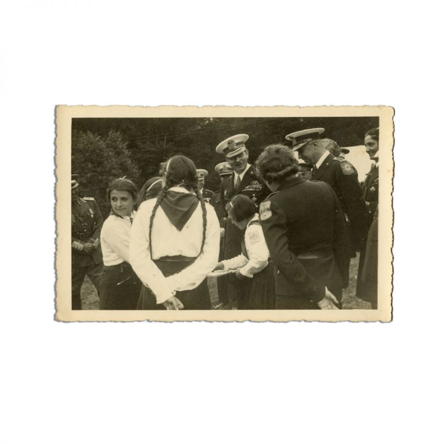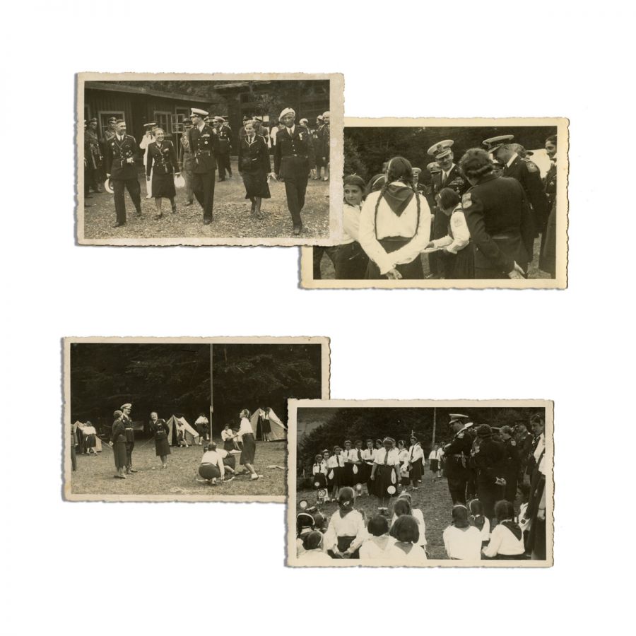 Patru fotografii tip carte poștală, ce-l surprind pe regele Carol al II-lea vizitând tabăra unei unități de cercetașe românce, care făceau parte din Straja Țării. Fotografiile surprind unitatea de cercetașe în timpul unor activități fizice, precum ridicarea corturilor sau pregătind demonstrații coregrafice, supravegheate îndeaproape de rege. Una dintre fotografii îl înfățișează pe Marele Voievod de Alba-Iulia, principele Mihai I, alături de comandantul Străjeriei, Teofil Sidorovici.