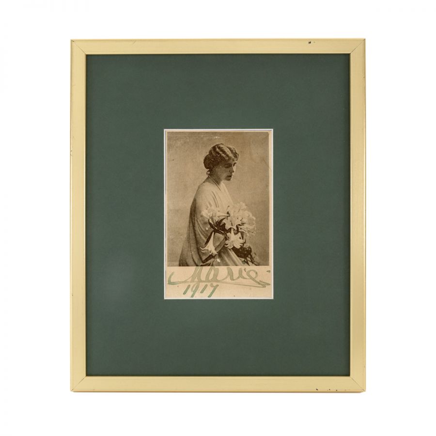 Regina Maria, fotografie tip carte poștală cu semnătură olografă, 1917