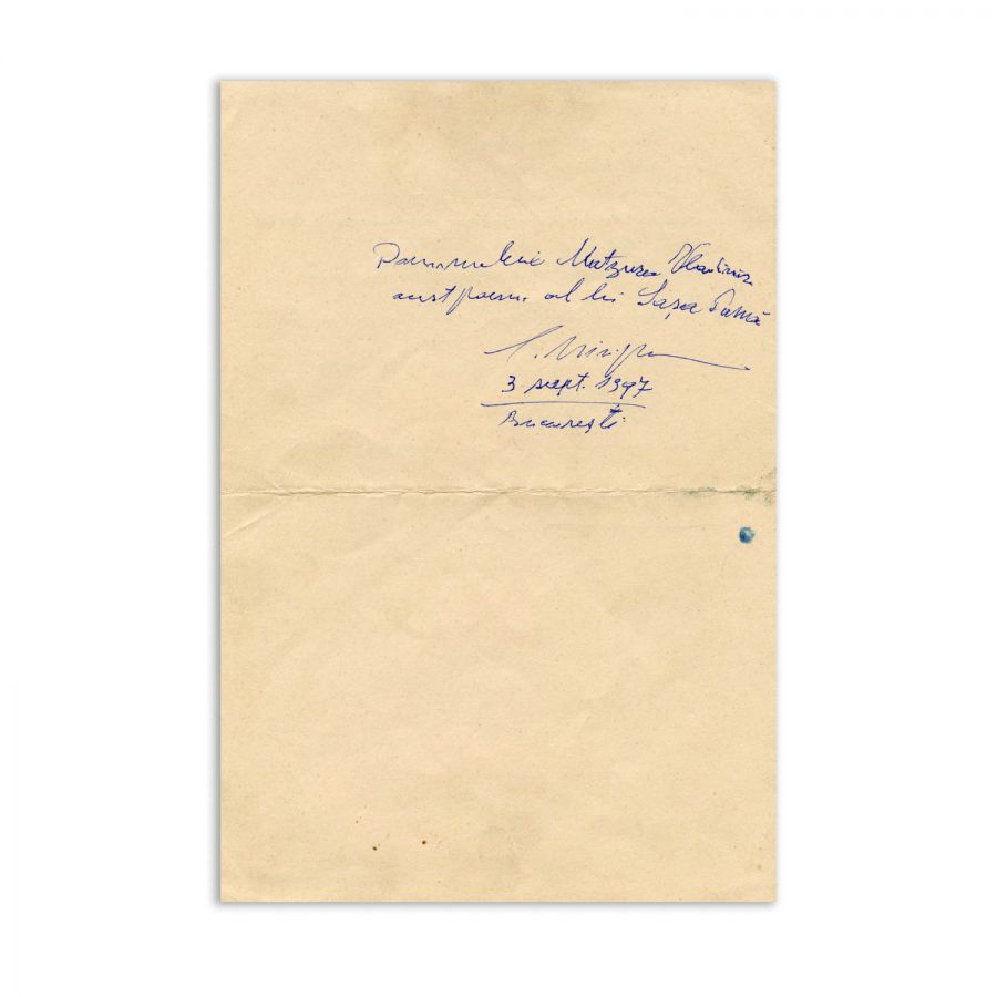 Pe verso regăsim dedicația lui Constantin Nisipeanu oferită lui Matzurea Vladimir, semnată și datată 3 septembrie 1997.