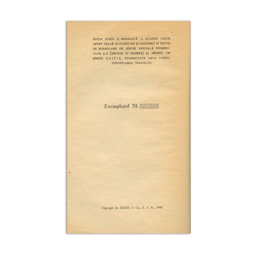 Volumul poartă pe pagina de titlu fals dedicația lui Sașa Pană pentru Ștefan Popescu, datată 10.V.1948.