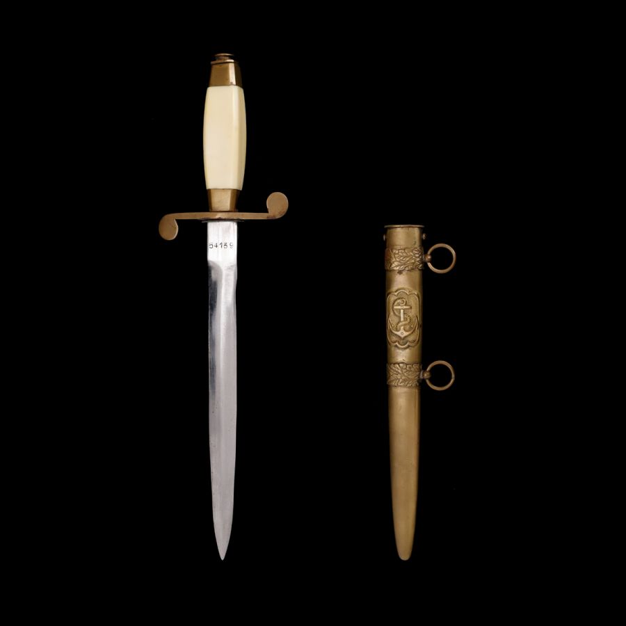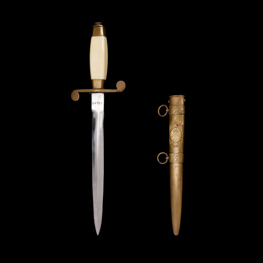 Stilet de paradă purtat la ținuta de reprezentare de ofițerii de marină în perioada R.S.R. Mânerul stiletului a fost realizat din fildeș.