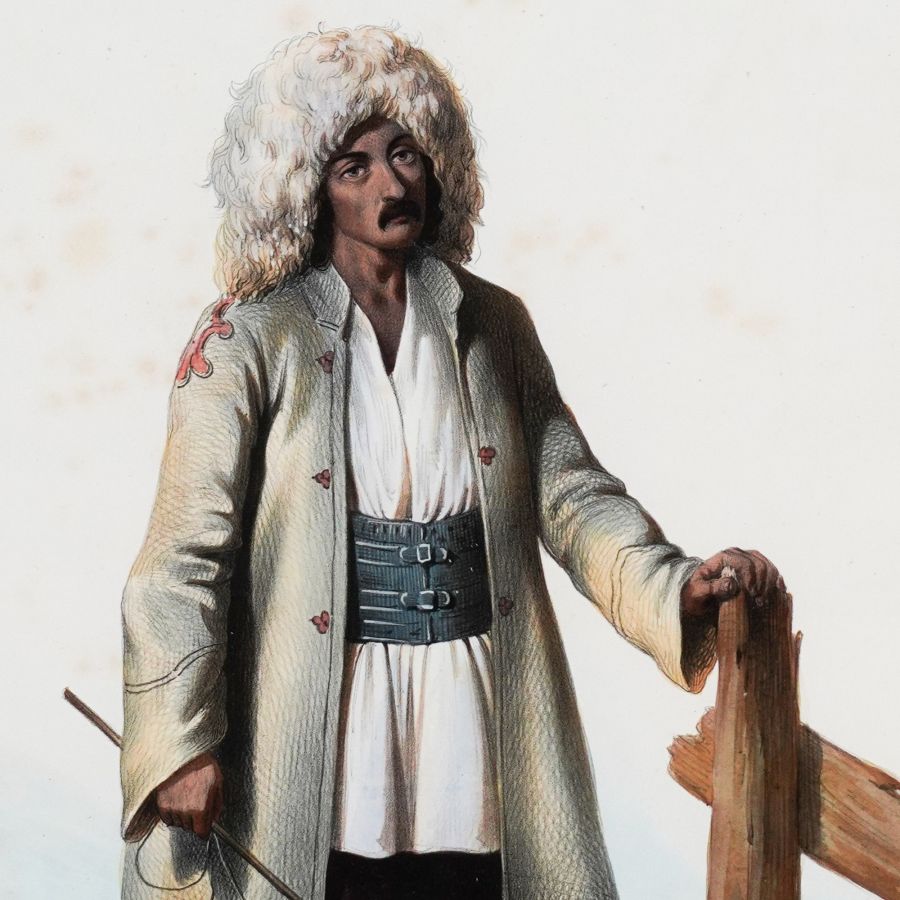 Valet țigan - Iași, litografie colorată manual, gravor Michel Bouquet