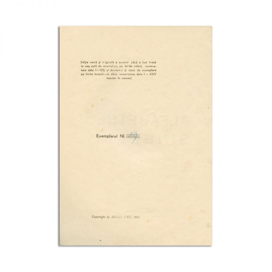 Volum bibliofil, tipărit într-o serie de 25 de exemplare pe hârtie Kunstdruck albă, numerotate I-XXV de editor și 100 de exemplare pe hârtie velină, numerotate 1-100 de editor. Exemplarul de față poartă numărul 19.