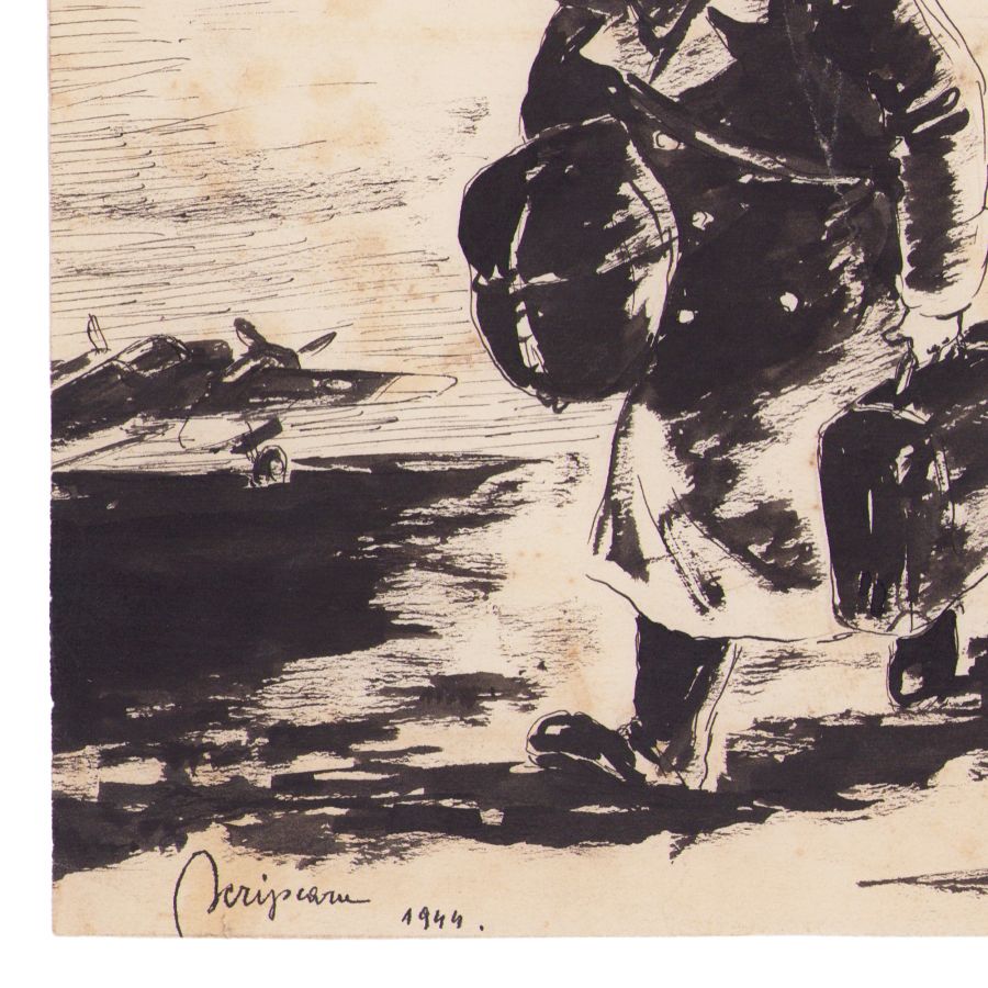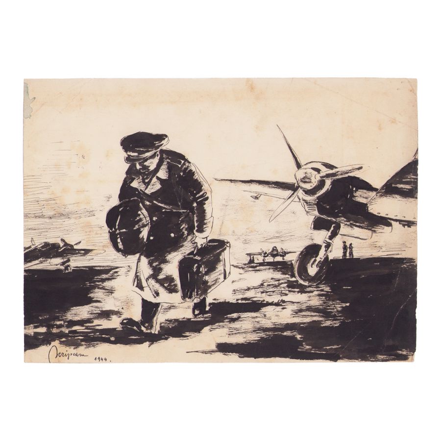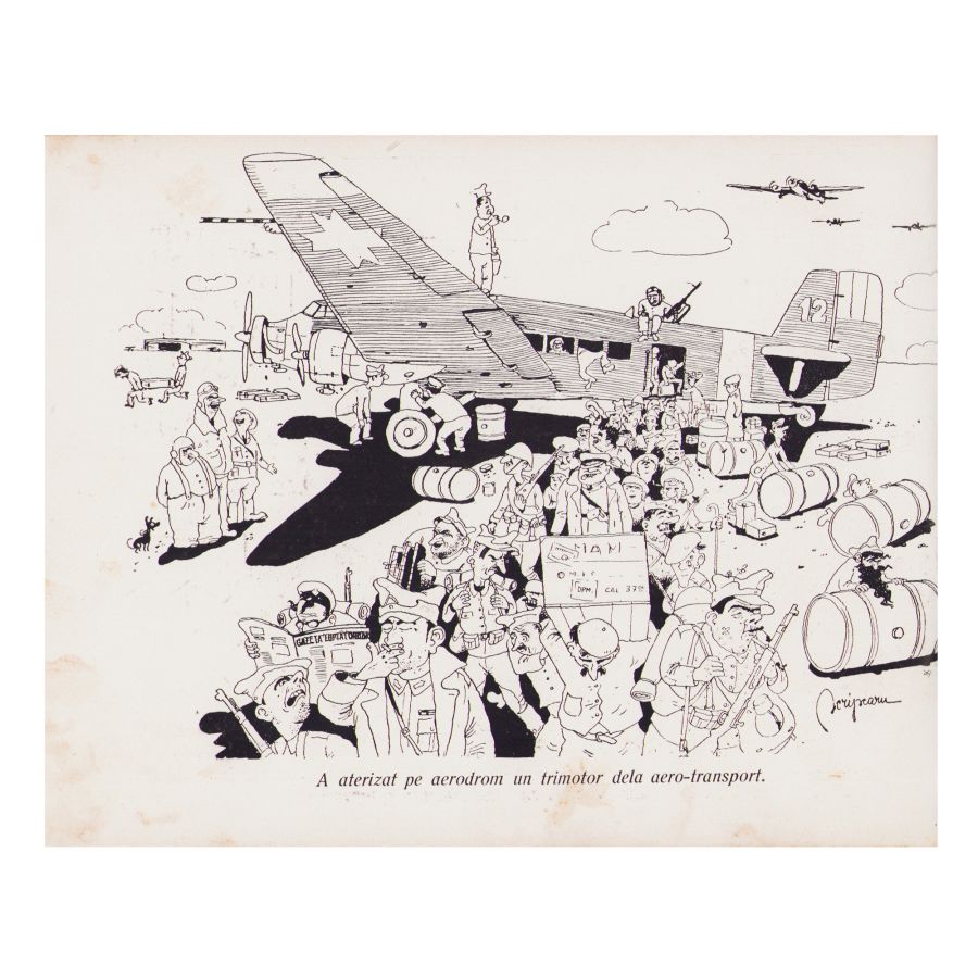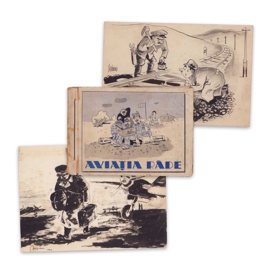 Vasile Scripcaru, Aviația râde, 1945, cu semnătura ilustratorului Mihail D. Gion + două lucrări de grafică