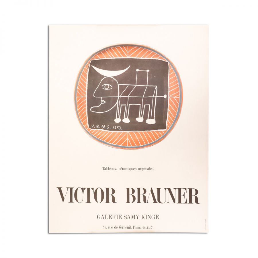 Afișul expoziției lui Victor Brauner, Tableaux. céramiques originales. Poterie et peintures, organizată la Paris la galeria Samy Kinge, în perioada 25 mai - 14 iulie 1983. Afișul a fost realizat în tehnica litografiei pe hârtie mată.