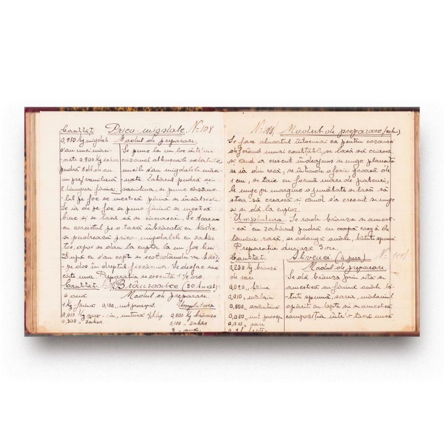 Două caiete dictando pentru rețete de supe și prăjituri ce au aparținut elevei din clasa a IV-a, Vrănceanu M. Un caiet cuprinde rețete grupate pe capitole, precum: supe, sosuri, prăjituri, mâncare din carne de porc, tobă. Al doilea caiet cuprinde numeroase rețete pentru supe, ouă, pește, fripturi, dulcețuri, borș, prăjituri, pate de foie gras.