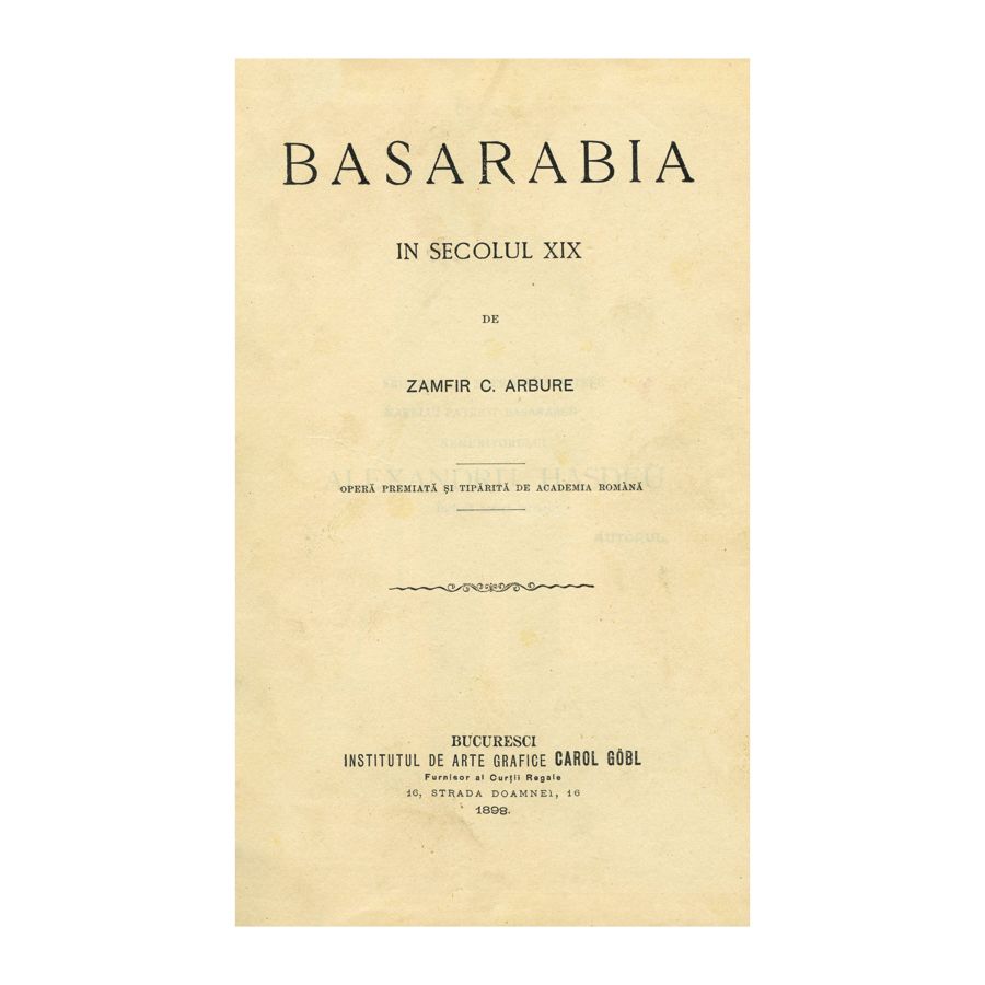 Basarabia în secolul XIX de Zamfir C. Arbure, București, Institutul de Arte Grafice Carol Gobl, 1898, 767 p.